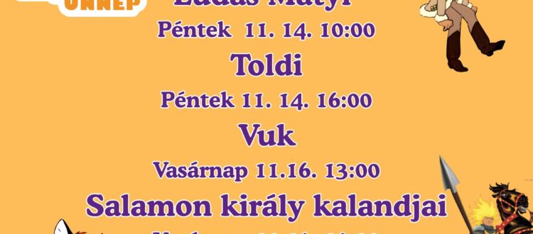 A rozsnyói Csemadokban november 14-én, pénteken a Lúdas Matyi és a Toldi, 16-án, vasárnap a Vuk és a Salamon király kalandjai című rajzfilmeket vetítik. A belépés ingyenes.