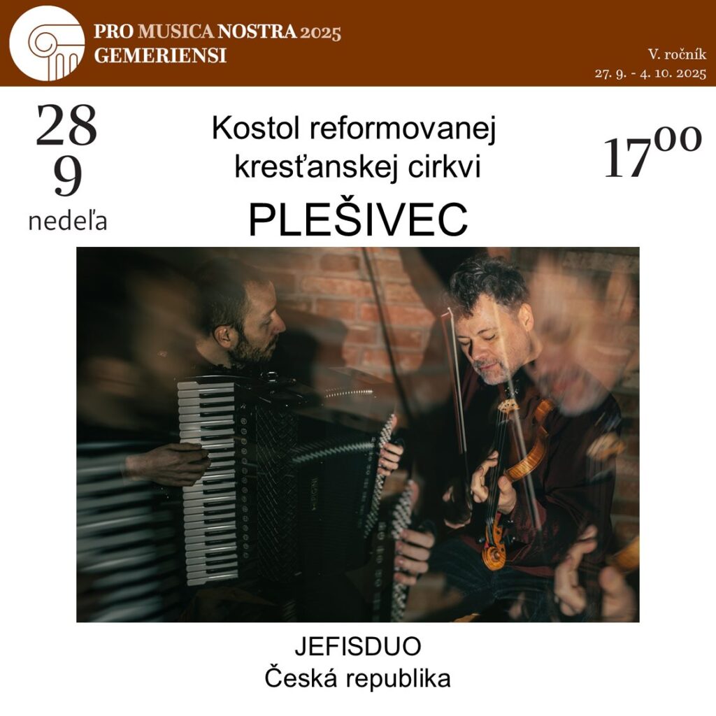 Szeptember 27-én, szombaton 18:00 órakor J. S. Bach csodálatos zeneműveivel Ivan Ženatý cseh hegedűművész nyitja meg a fesztivált a rozsnyói székesegyházban. A pelsőci református templomban szeptember 28-án 17:00 órakor ismert melódiák átdolgozásait hallhatja a közönség a cseh Jefis Duo, azaz Pavel Fischer (hegedű) és Jakub Jedlinský (harmonika) előadásában.