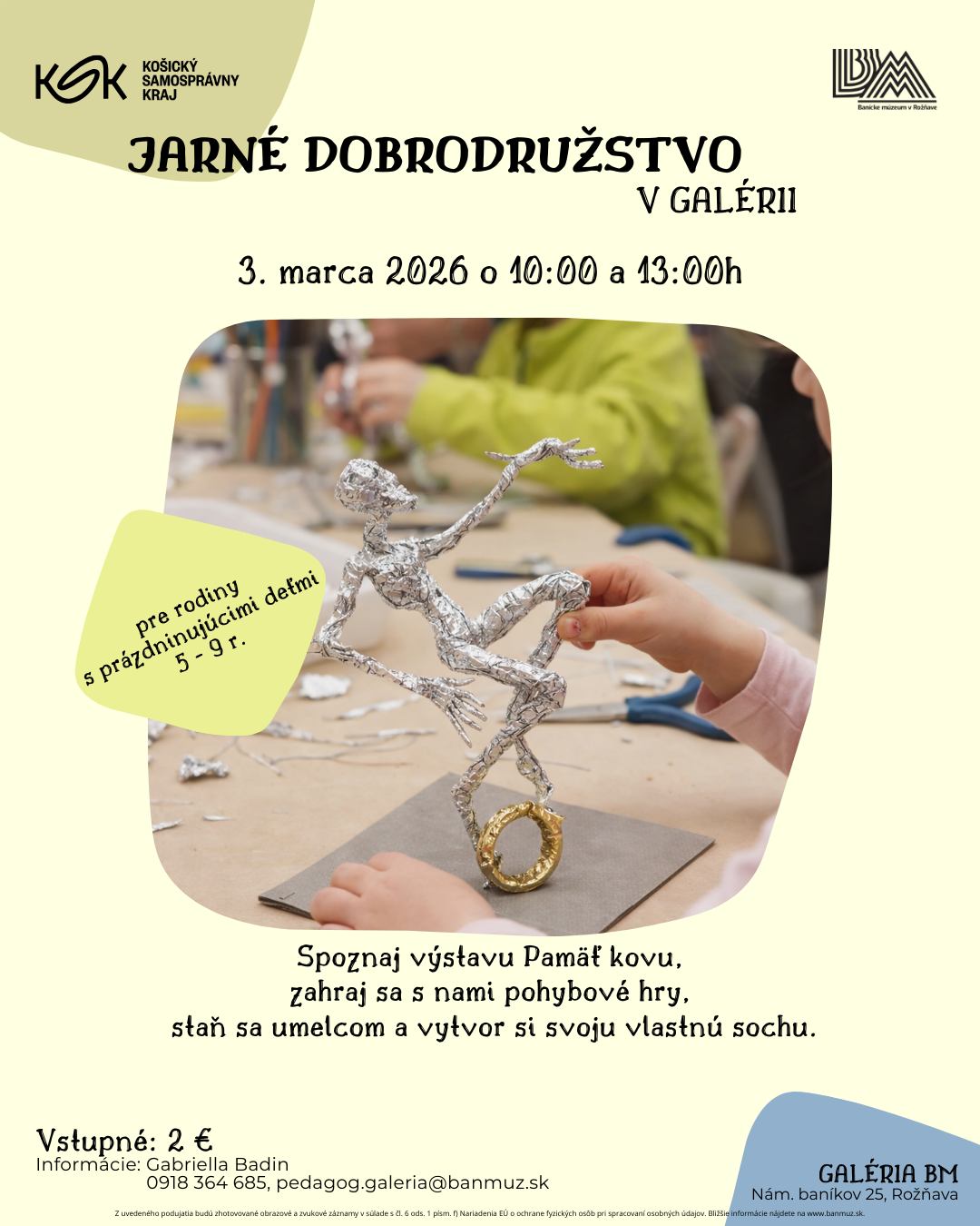 A programra 2026. március 3-án kerül sor, 10:00 és 13:00 órától a Rozsnyói Bányászati Múzeum főtéri Galériájában. A családi program 5-9 éves gyerekeknek szól, a belépődíj 2 €/fő. Elérhetőség: pedagog.galeria@banmuz.sk, 0918 364 685.