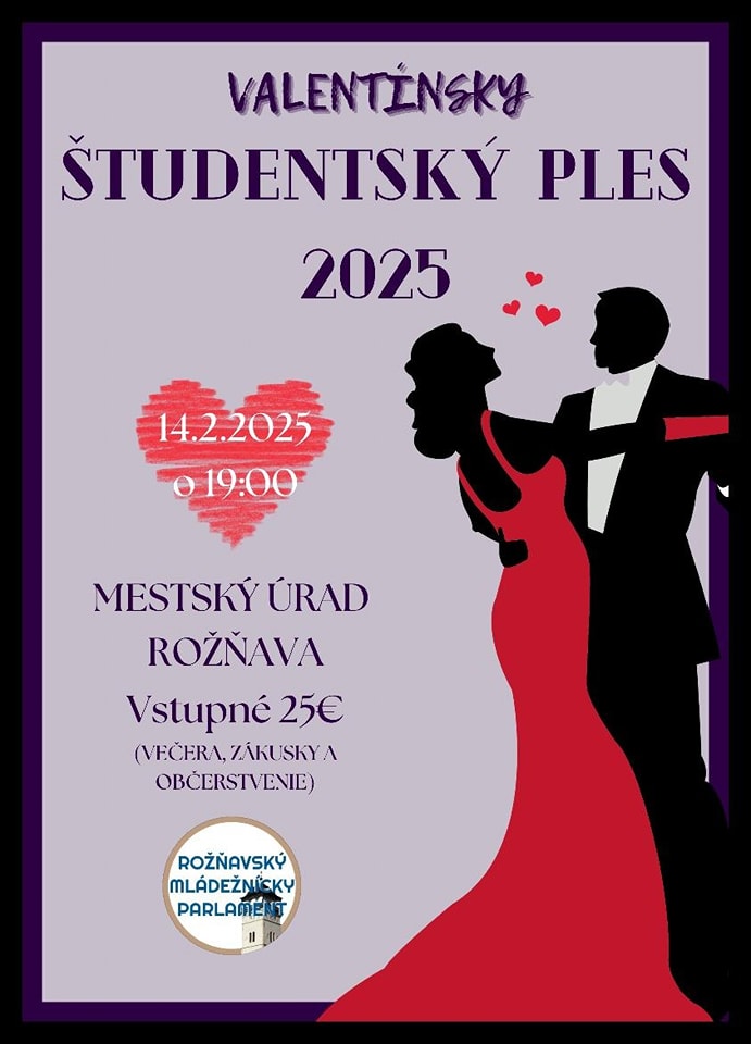 A Rozsnyói Ifjúsági Parlament Valentin-napi diákbált szervez 2025. február 14-én, pénteken 19:00 órai kezdettel a Rozsnyói Városi Hivatal nagytermében.