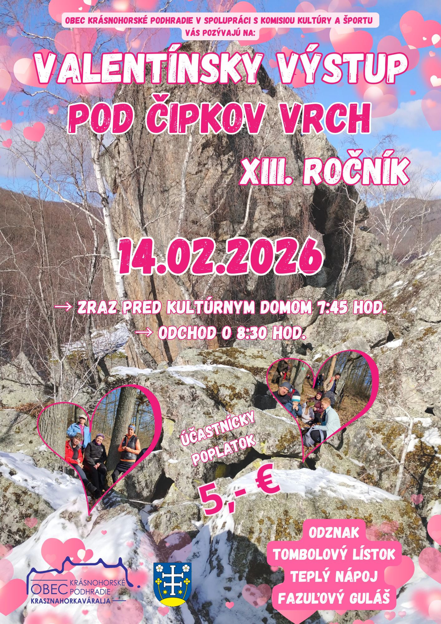 Krasznahorkaváralja község a helyi önkormányzat kulturális- és sportbizottságával együttműködve február 14-én, szombaton 13. alkalommal szervezi meg a hagyományos Bálint-napi túrát a Csipkedombra. Szeretettel várnak minden természetkedvelőt, túrázót – párokat, családokat és egyéni résztvevőket egyaránt.